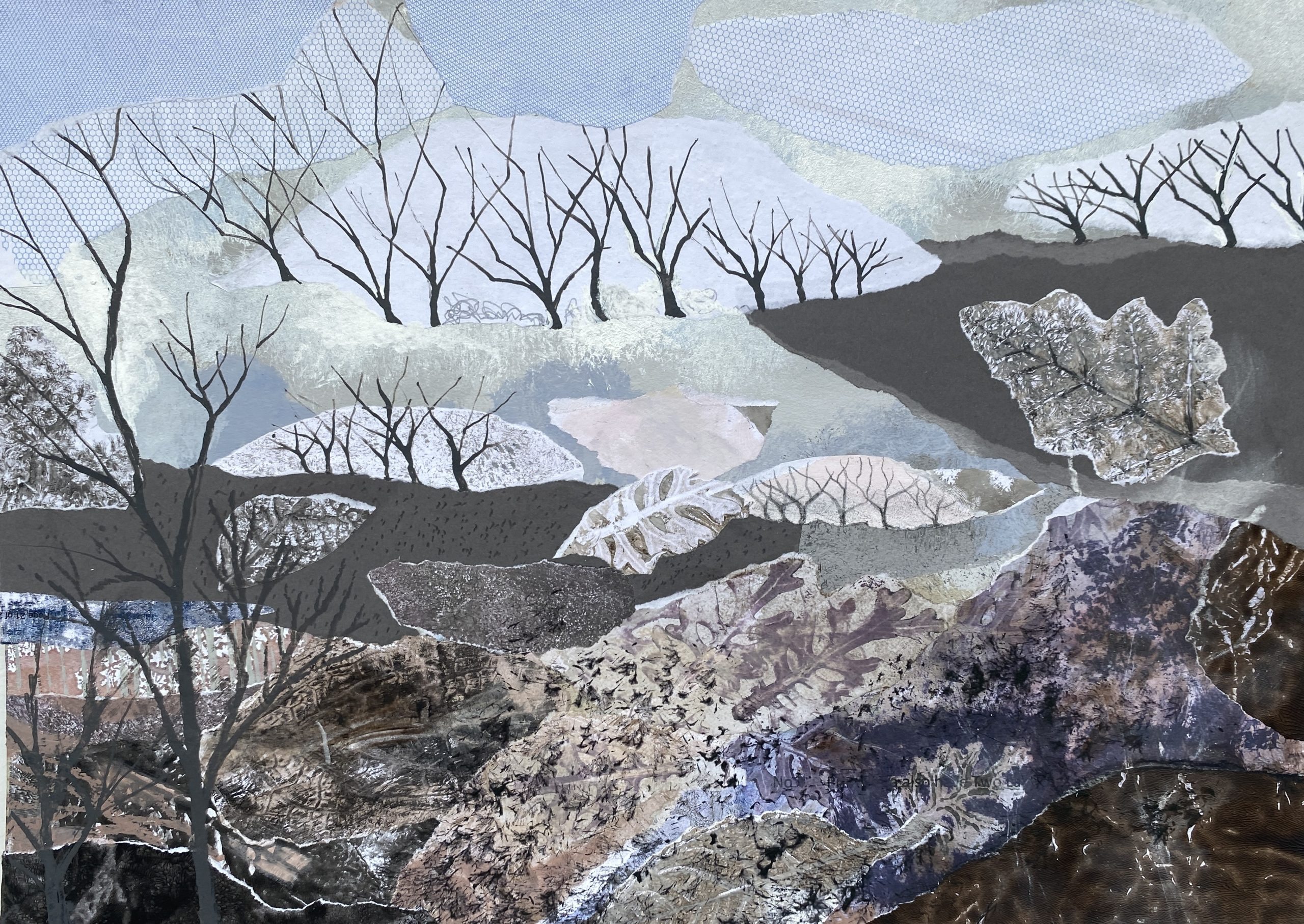 I have recently started working with collage. I use bits of discarded paper and sometimes torn-up bits of old paintings.